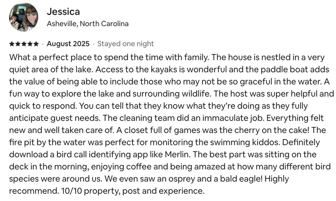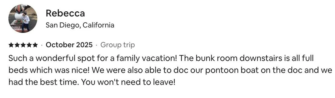 We’re grateful to share our home with other families and hope your time here is filled with just as much joy, connection, and lake-day magic.